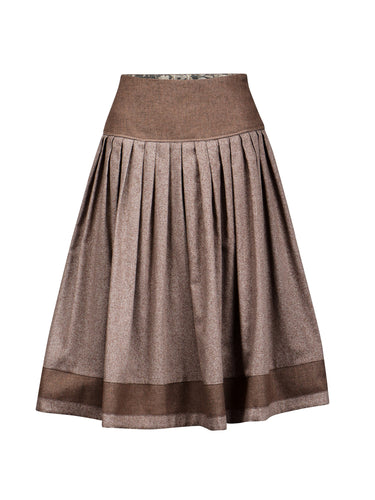 Meisterhafter Materialmix in zeitloser Silhouette: Dieser Rock besticht durch die gelungene Kombination aus feiner, fließender Baumwolle und hochwertigem Loden aus Italien. Die markante Lodenpasse sorgt nicht nur für einen erstklassigen Sitz an der Taille, sondern bildet zusammen mit der farblich abgestimmten Saumblende einen edlen Rahmen für das gesamte Design. Eine filigrane, aufgesetzte Borte an der Passe setzt einen dezenten, handwerklichen Akzent. Ein stilvolles Kleidungsstück, das alpine Tradition und moderne Eleganz souverän vereint.