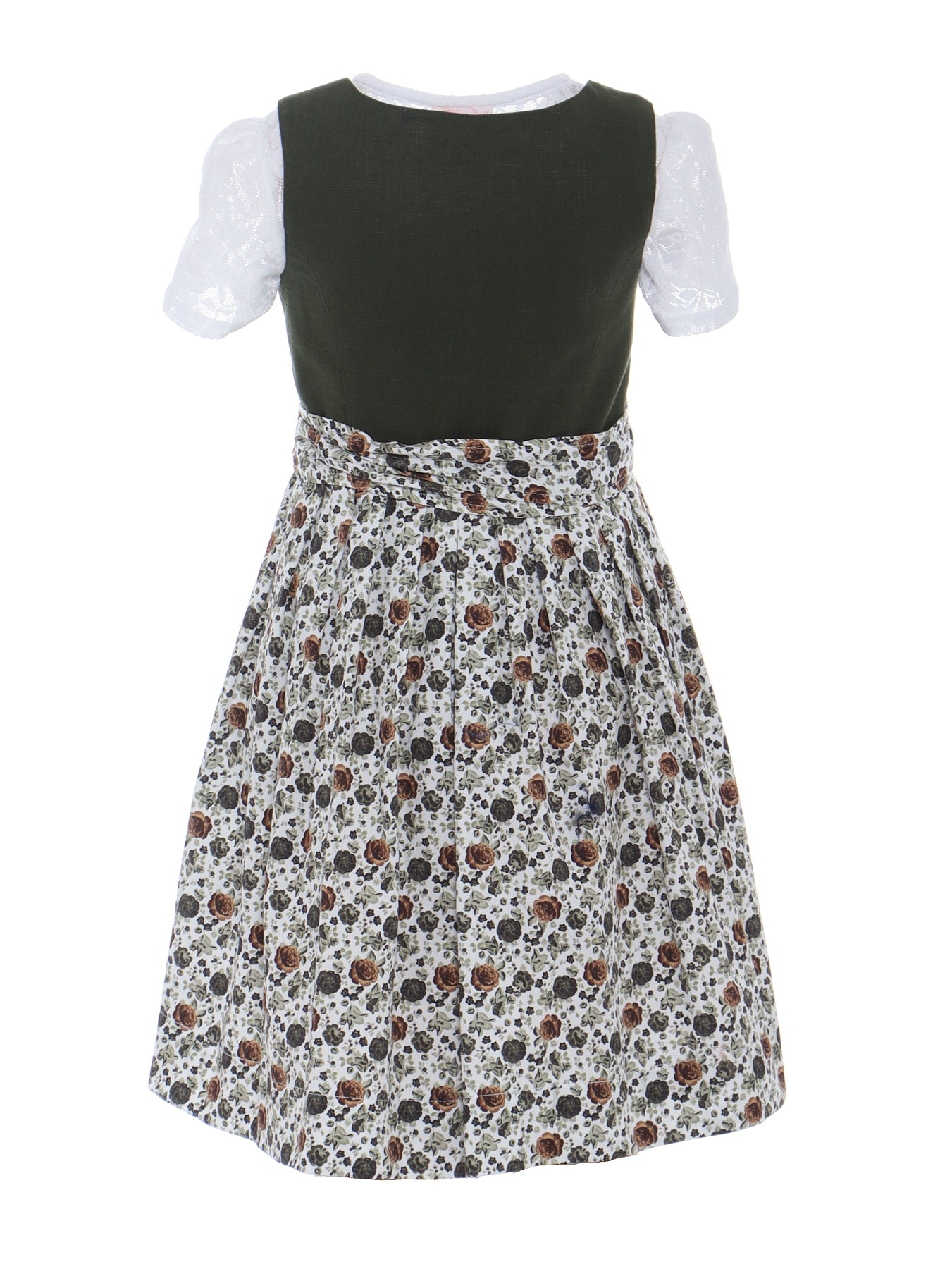 Das Dirndl wird mit einer dazu passenden Spitzenbluse geliefert, die das Outfit noch weiter veredelt und für einen festlichen Look sorgt. Ein perfektes Outfit für besondere Anlässe, bei dem Ihre kleine Dame garantiert alle Blicke auf sich zieht!
