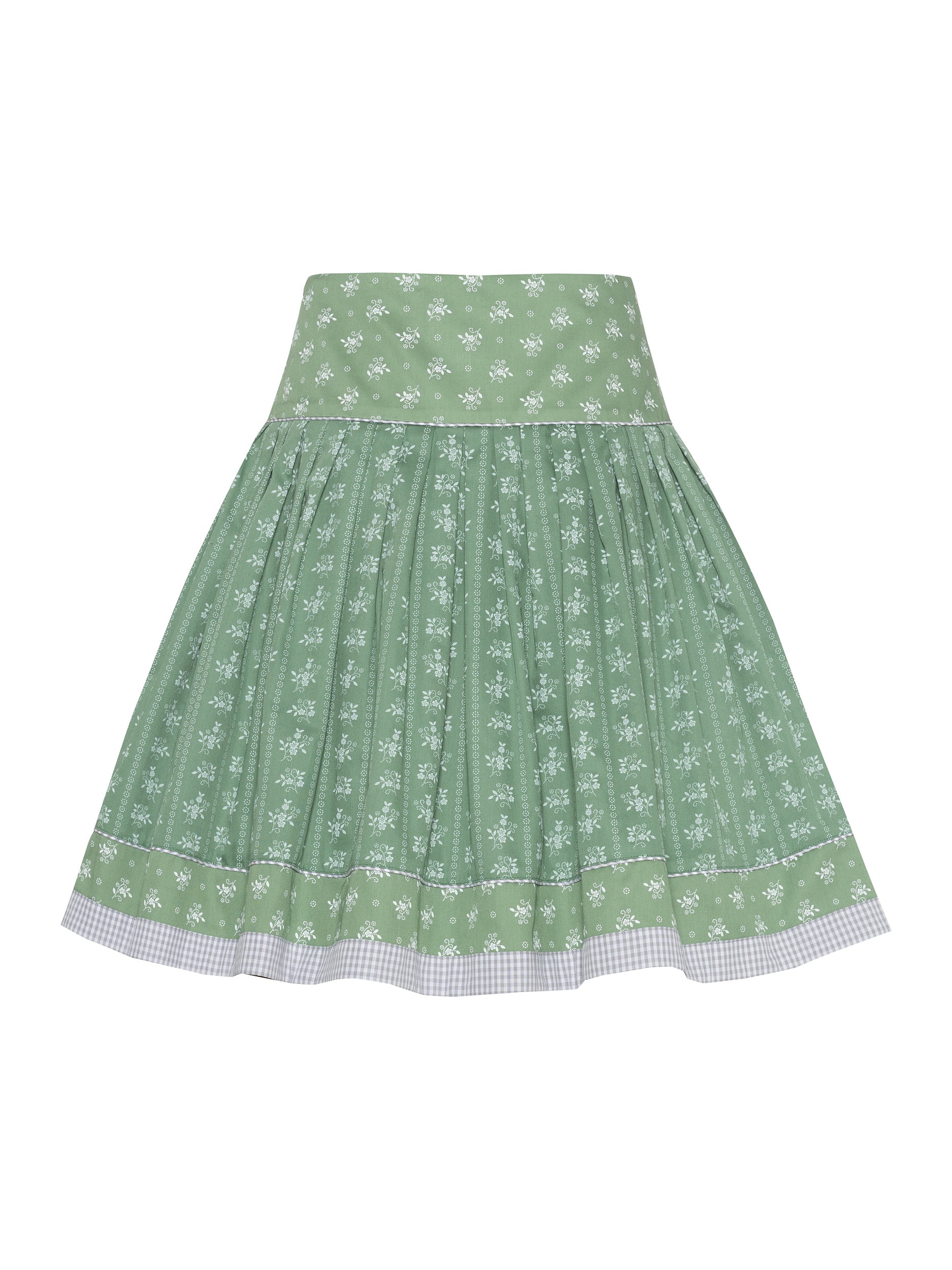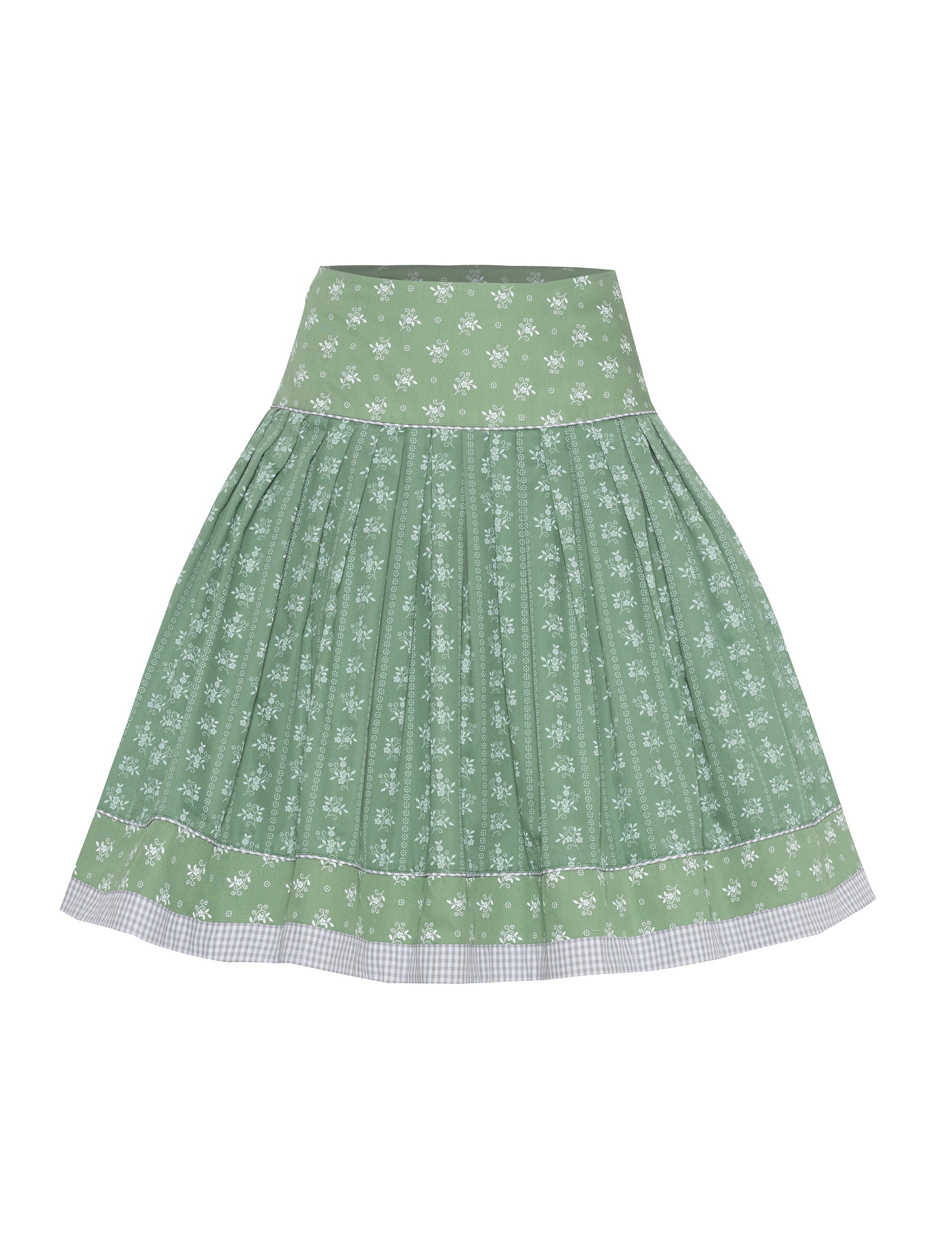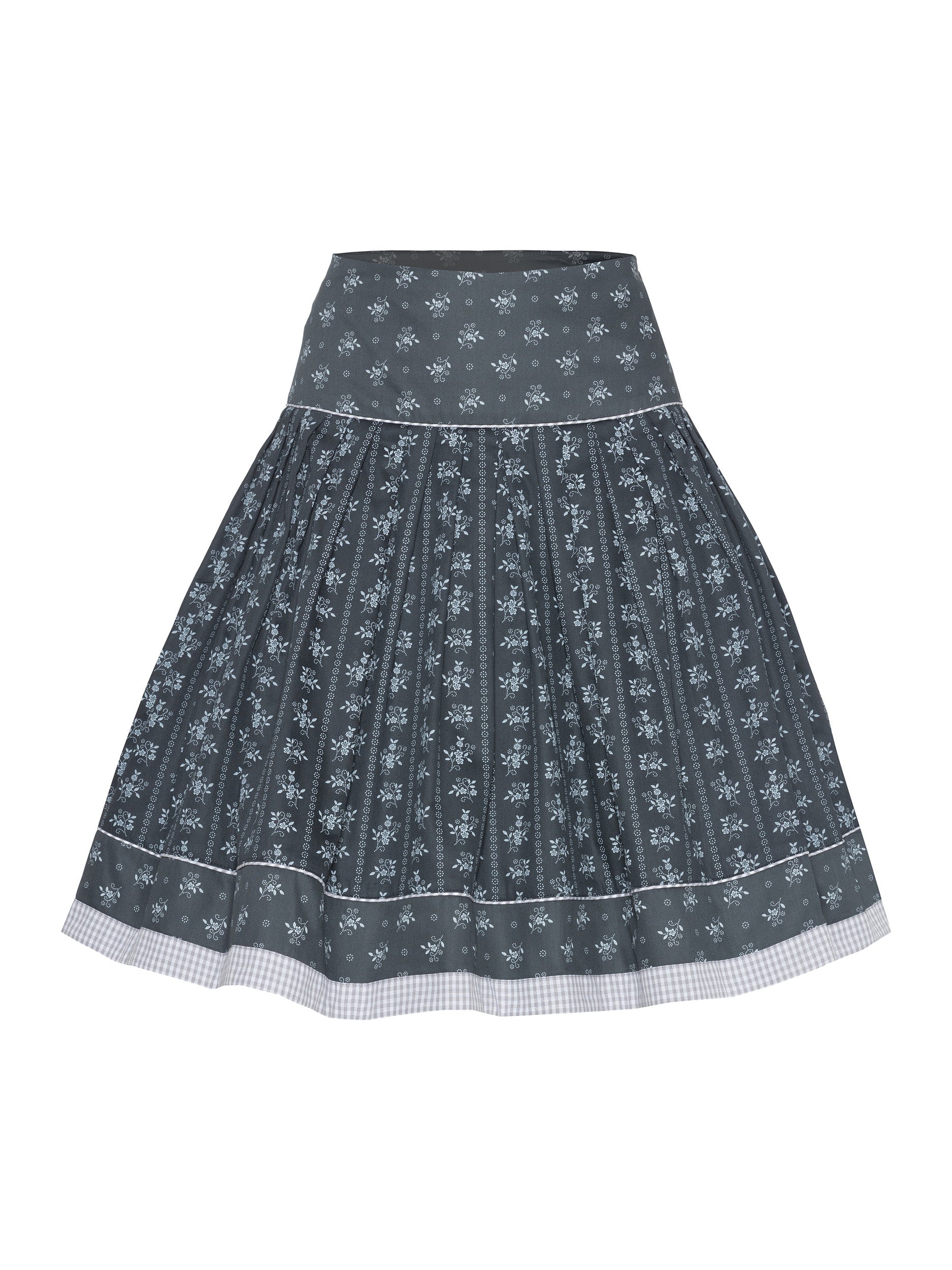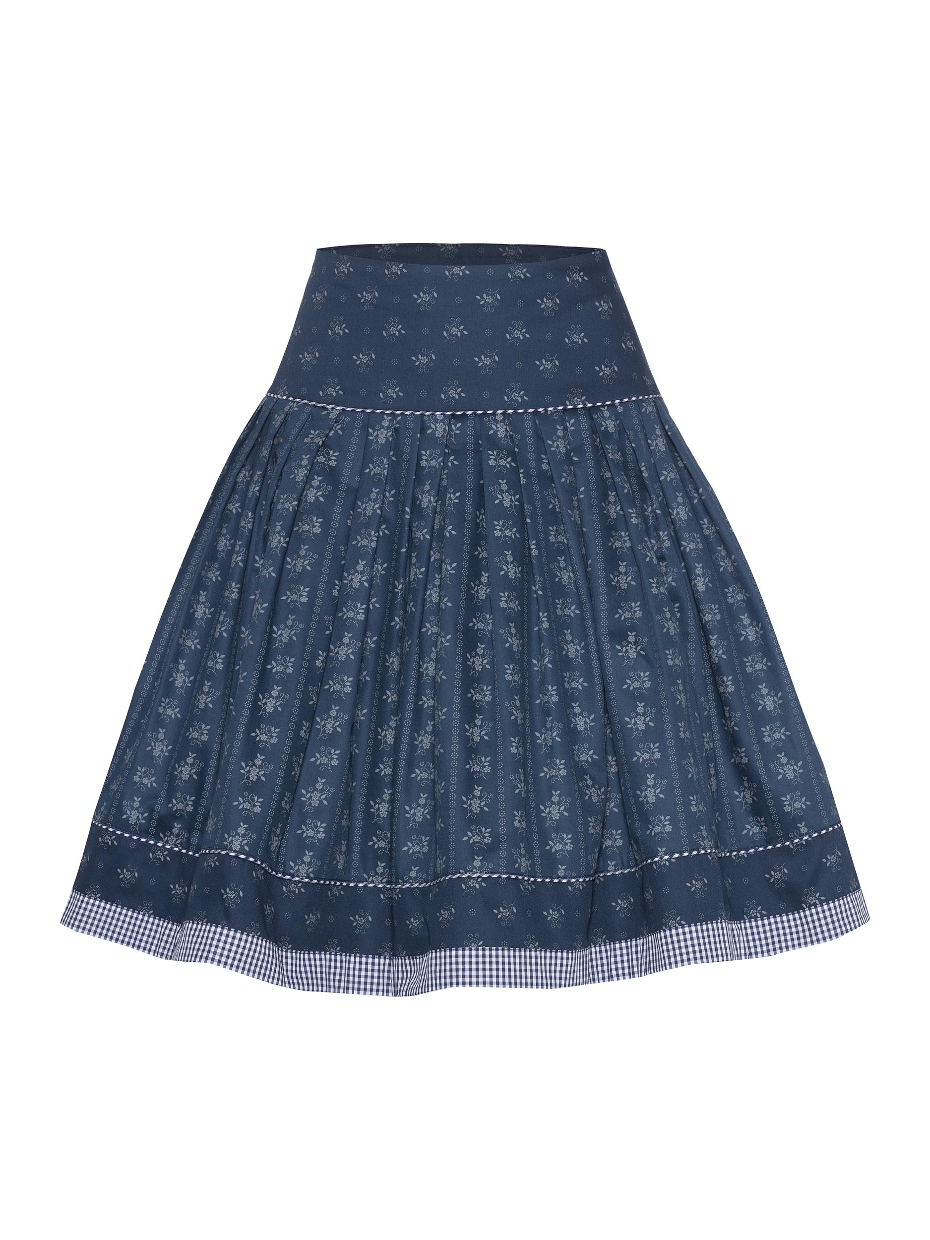 Der flach anliegende Sattel sorgt für eine hervorragende Passform an der Hüfte, während die eingearbeitete Vichykaropaspel eine feine, traditionelle Kontur setzt. Am Saum findet sich eine farblich abgestimmte Blende wieder, die das Design perfekt einrahmt und für einen schönen Stand sorgt. Gefertigt aus reiner, atmungsaktiver Baumwolle, bietet dieser Rock ein wunderbar natürliches Tragegefühl. Mit einer Länge von 58 cm ist er die ideale Wahl für einen modernen, sommerlichen Look, der sowohl im Alltag als auch auf dem nächsten Waldfest überzeugt.