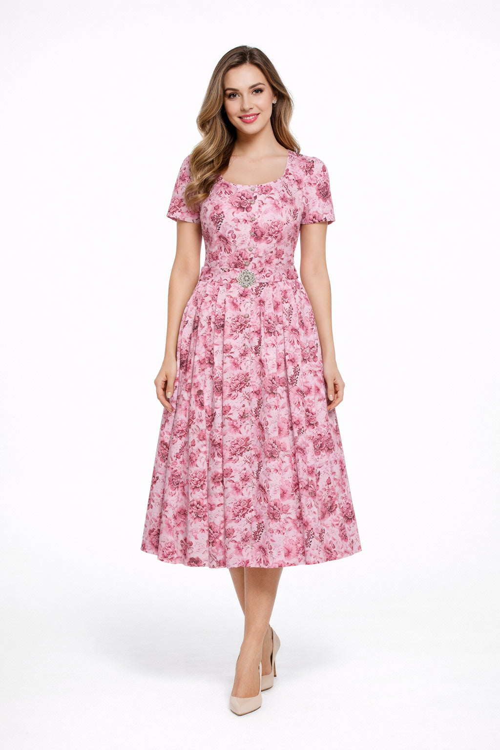Rosendruck-Kleid mit kurzem Arm