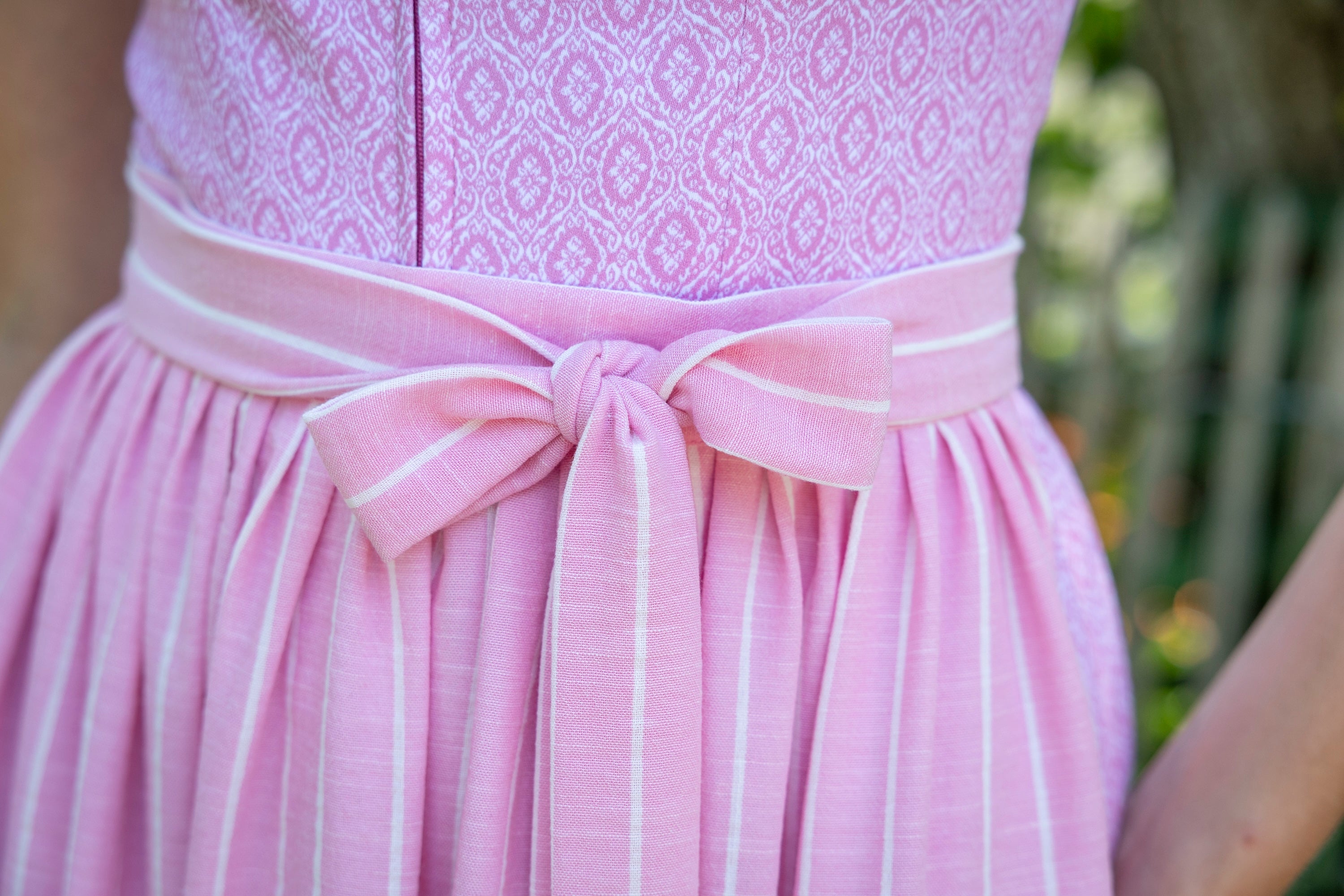 Sommerliches Dirndl aus hochwertigem Baumwollstoff mit Streifen-Schürze – 75 cm