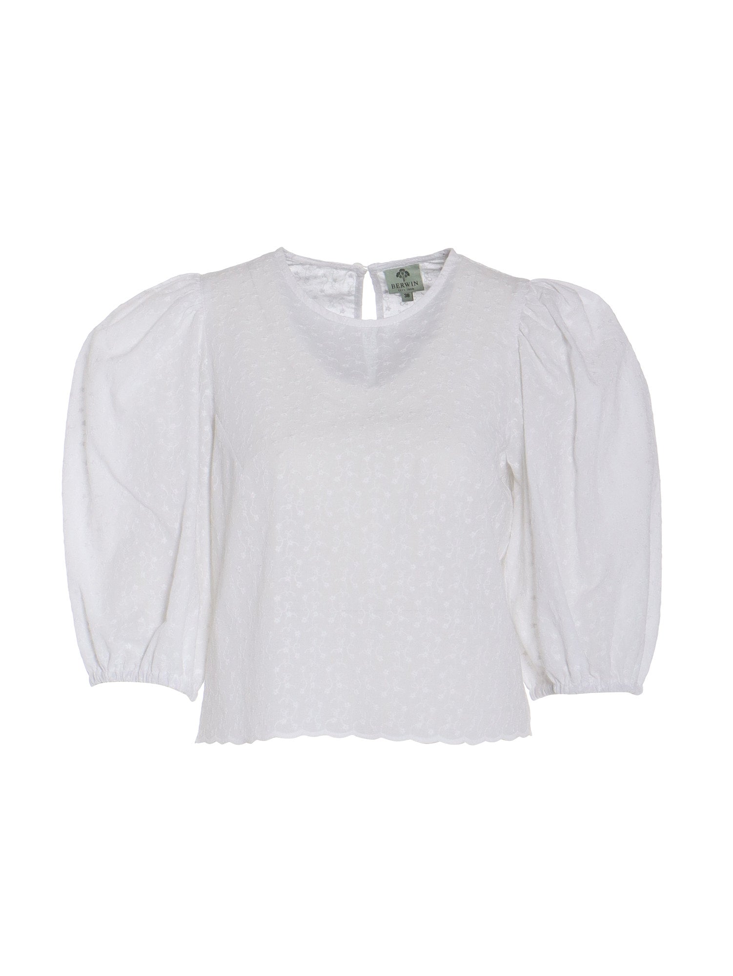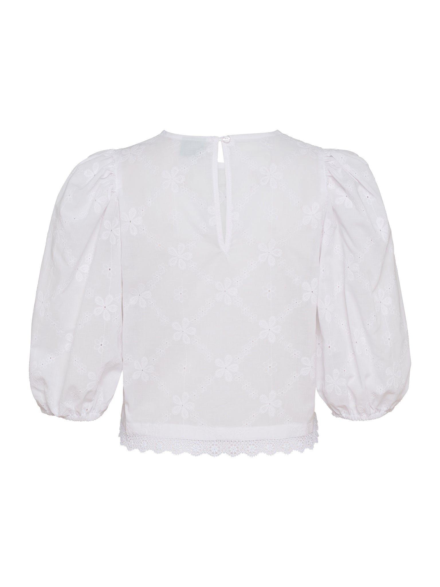 Kurz geschnittene Bluse aus hochwertigem, allover besticktem Baumwollstoff, die sich durch ihre liebevollen Details und die durchdachte Verarbeitung auszeichnet.