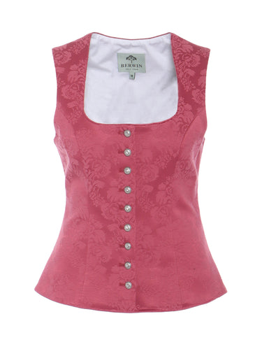 Dieses elegante Trachtenmieder vereint traditionellen Stil mit modernem Tragekomfort. Der edle Stretch-Jacquard sorgt für eine perfekte Passform und angenehme Bewegungsfreiheit. Der klassische Rundhalsausschnitt schmeichelt dem Dekolleté und lässt sich vielseitig kombinieren. Silberfarbene Knöpfe setzen stilvolle Akzente, während das vollständige Futter für hochwertigen Komfort sorgt. Ob zum Dirndlrock, zur Lederhose oder in moderner Trachten-Kombi – dieses Mieder ist ein echtes Allroundtalent für festliche Anlässe.