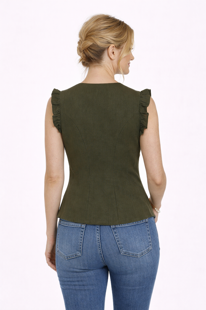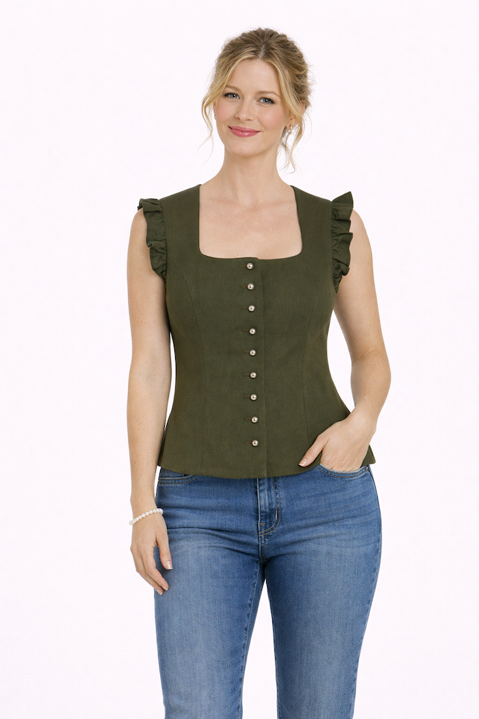 Dieses wunderschöne Leinenmieder vereint traditionelle Handwerkskunst mit moderner Leichtigkeit. Der kleine Flügel-Arm verleiht dem Modell eine charmante Note, während der runde Ausschnitt mit feiner Stoffpaspel das Dekolleté elegant umrahmt. Es ist komplett gefüttert und durchgeknöpft mit klassischen Trachtenknöpfen. Ob zu Rock oder Hose – dieses Mieder lässt sich vielseitig kombinieren und rundet jedes Trachten-Outfit stilvoll ab.