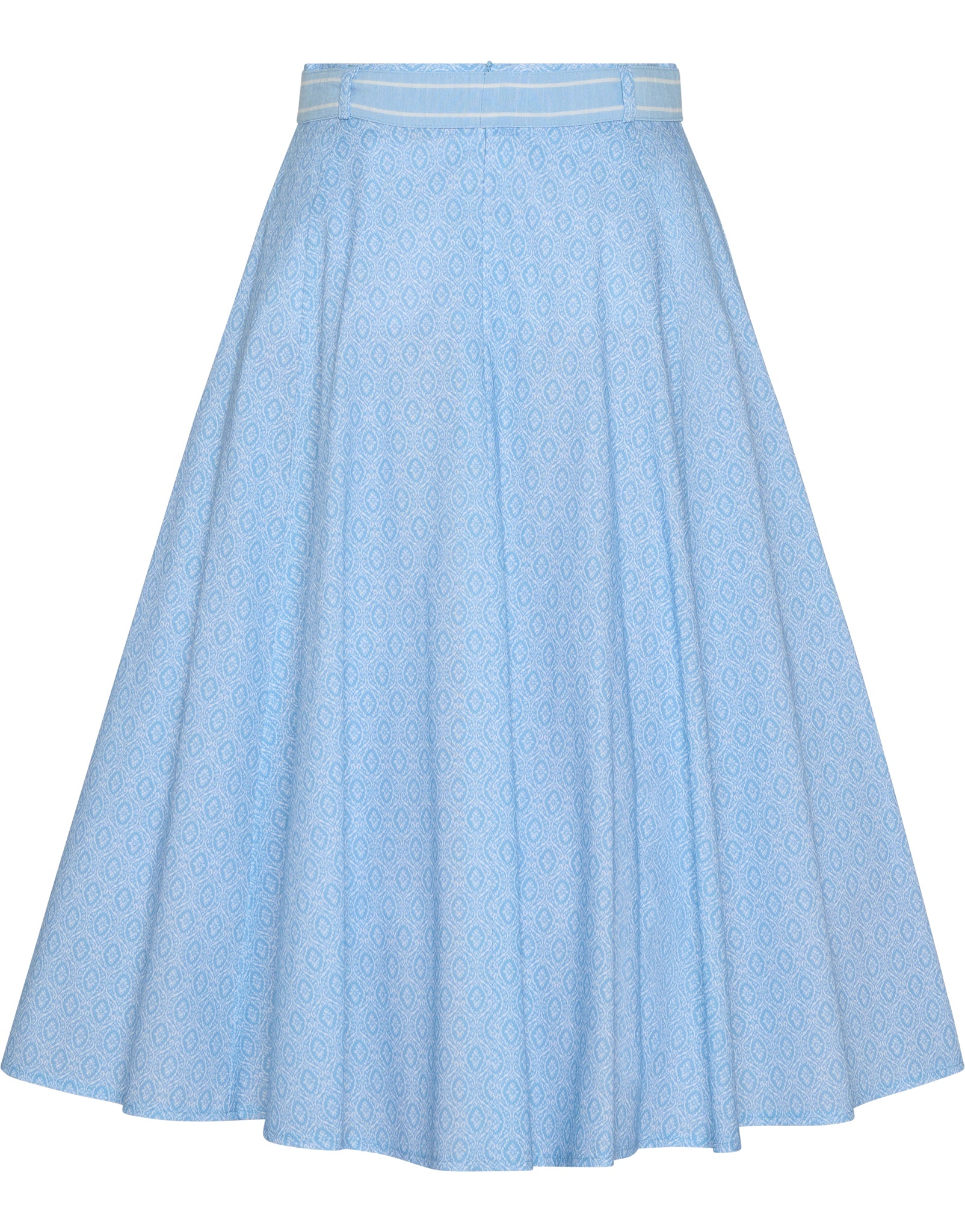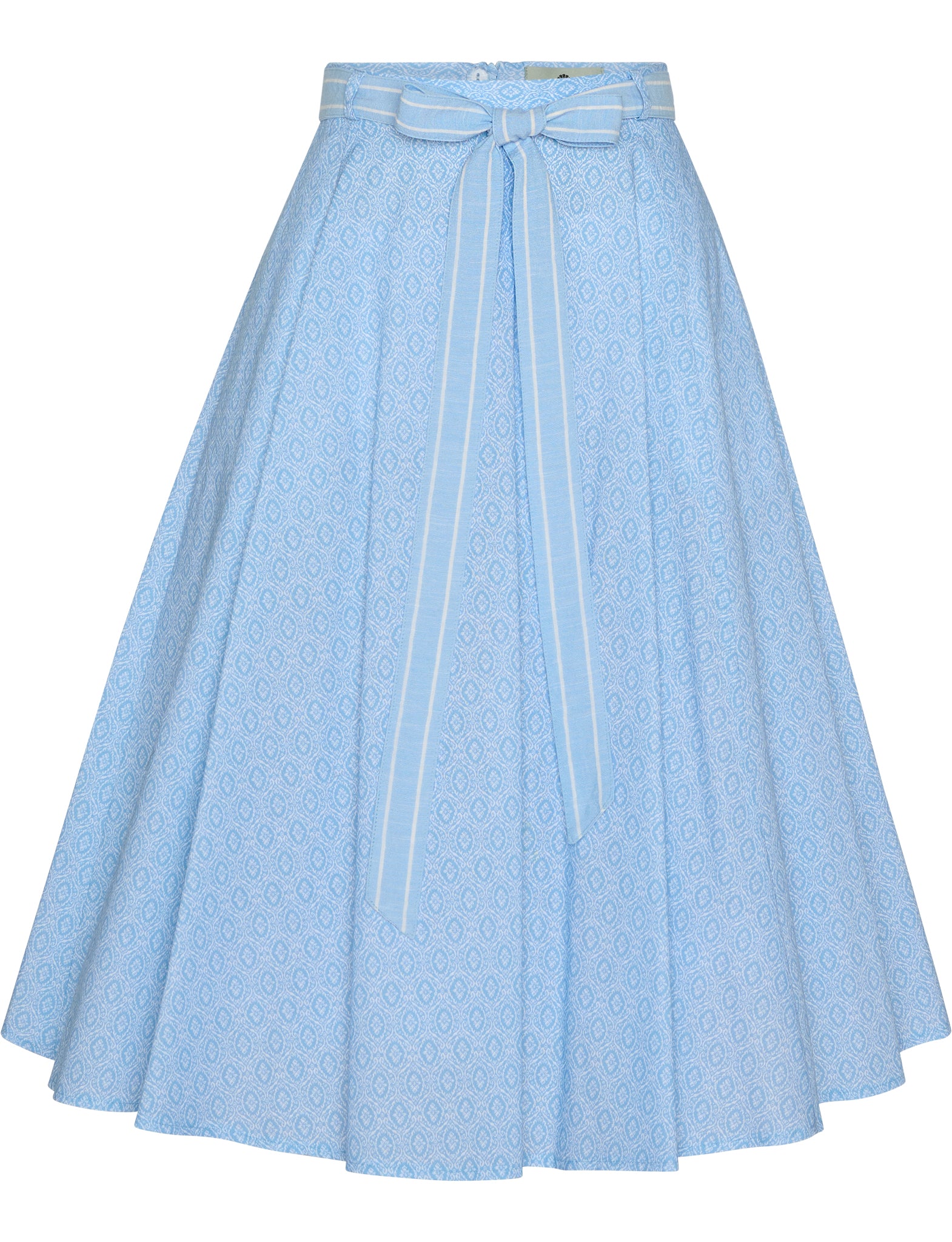 Tellerrock aus Baumwolldruck mit Streifengürtel