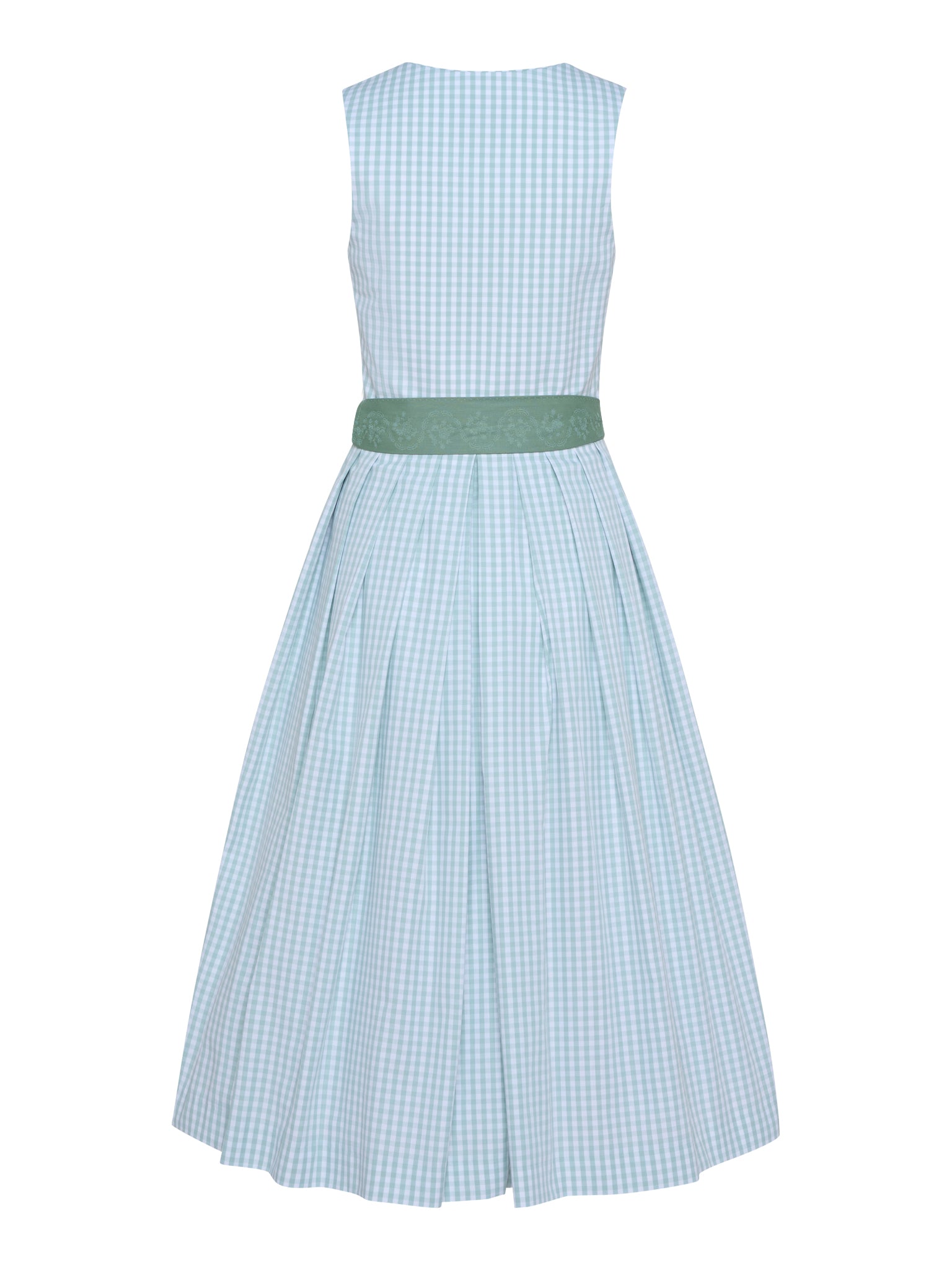 Klassisches Vichykaro-Dirndl mit Streifen-Schürze und Faltenrock – 75 cm